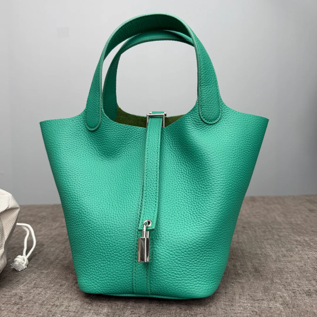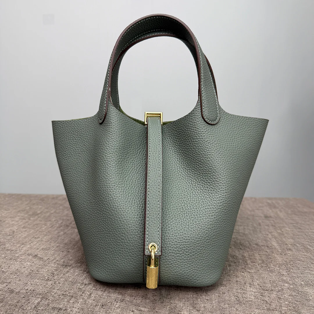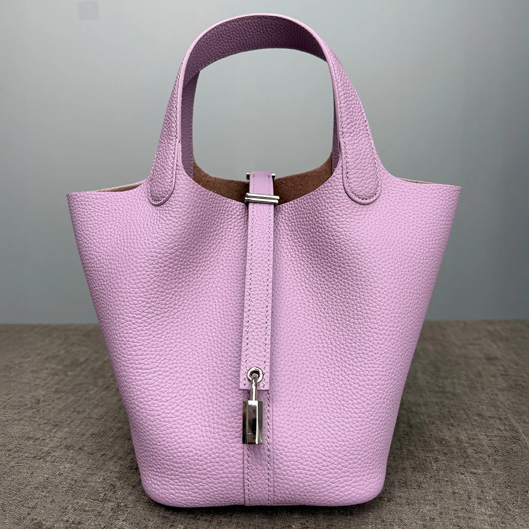Featuring a chic bucket shape and elegant lock decoration, this bag is a fashionable accessory for any wardrobe.